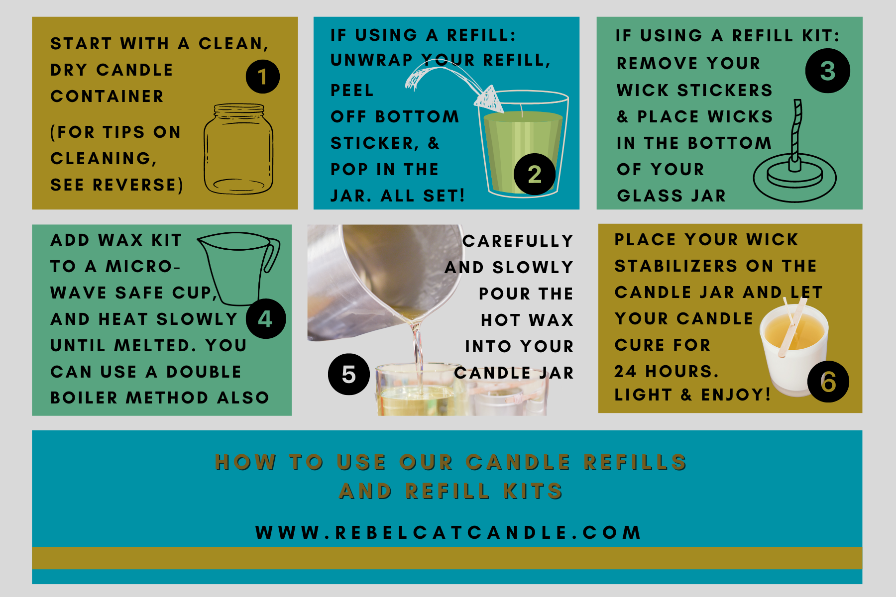 Reuse your favorite candle jars and enjoy an eco-friendly candle-making experience while saving money! Our candle refill kits are perfectly designed for our 13 oz matte black glass jars, but they’re versatile enough to refill any empty candle vessels you already have at home.