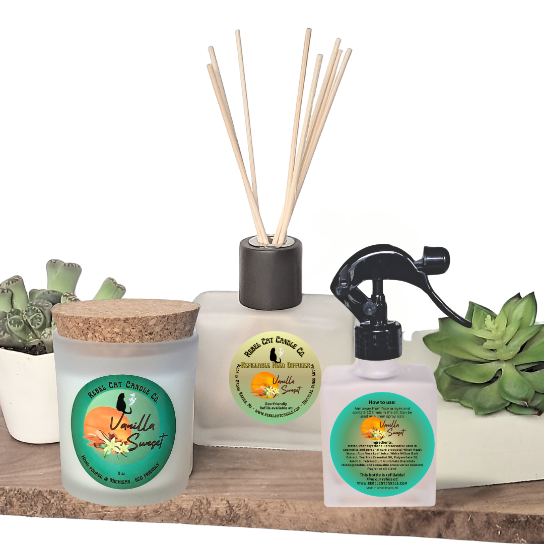 Combining the heavenly scent of sweet vanilla with rich and exotic sandalwood has resulted in an opulent elixir. Our Vanilla Sunset has a warm and relaxing scent.